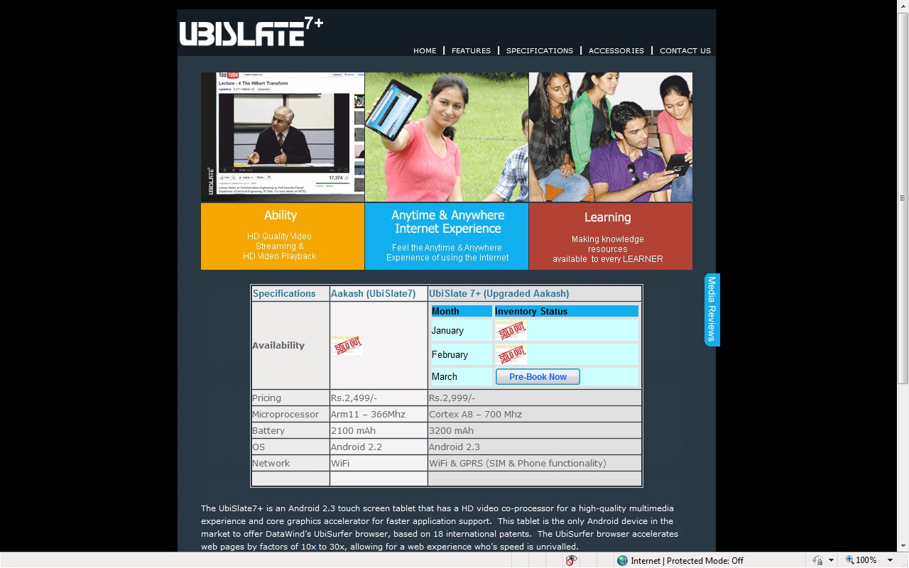 உலகிலேயே மிகக் குறைந்த விலையில் அமைந்த ஆகாஷ் டேப்ளட் பிசி இந்தியாவில் அறிமுகப்படுத்தப் பட்டது.